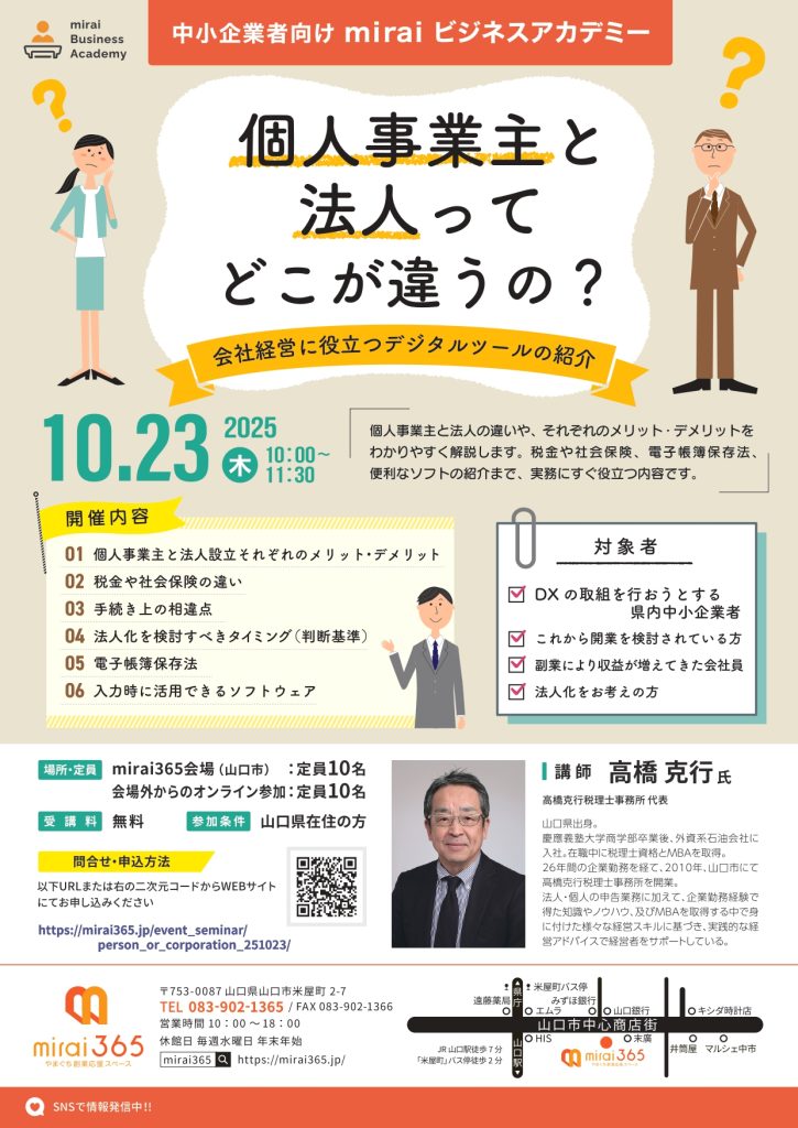 個人事業主と法人の違いや、それぞれのメリット・デメリットをわかりやすく解説します。税金や社会保険、電子帳簿保存法、便利なソフトの紹介まで、実際にすぐ役立つ内容です。
